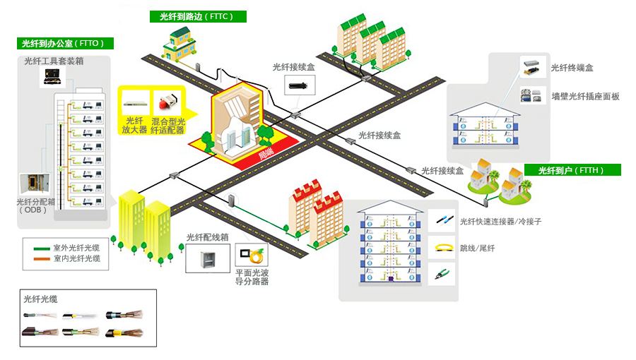 Based on years of technology accumulation in the field of communication networks and unique insights into future optical communication systems, Koman Light has introduced FTTX (FTT0, FTTH, FTTB) based on communication network physical connection devices and devices for domestic and international communication network construction users. +LAN, ...) system solution that provides optical wiring management products from the communication office to the user's home or office.